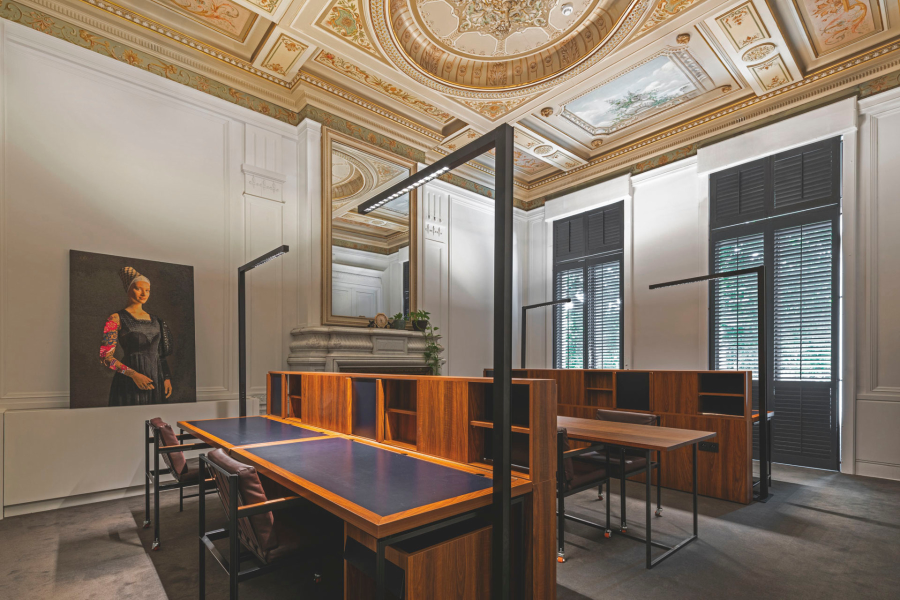 Ein schlankes Aluminiumprofil nimmt den Leuchtenkopf auf, der mit seiner blendfreien LED-Technologie den Arbeitsplatz beleuchtet und über einen kräftigen Indirektlichtanteil den Raum erhellt. © Deltalight