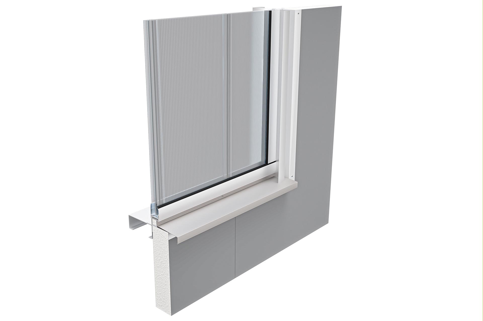 Das System lässt sich optional um Lamellengeräte für tägliche Be- und Entlüftung, Zuluft oder natürlichen Rauch- und Wärmeabzug ergänzen. Auch Fensterbänke und Soganker-Querriegel sind nach Abstimmung möglich. Farblich stehen die Varianten klar und opal standardmäßig zur Verfügung; weitere Farben sind auf Anfrage realisierbar.